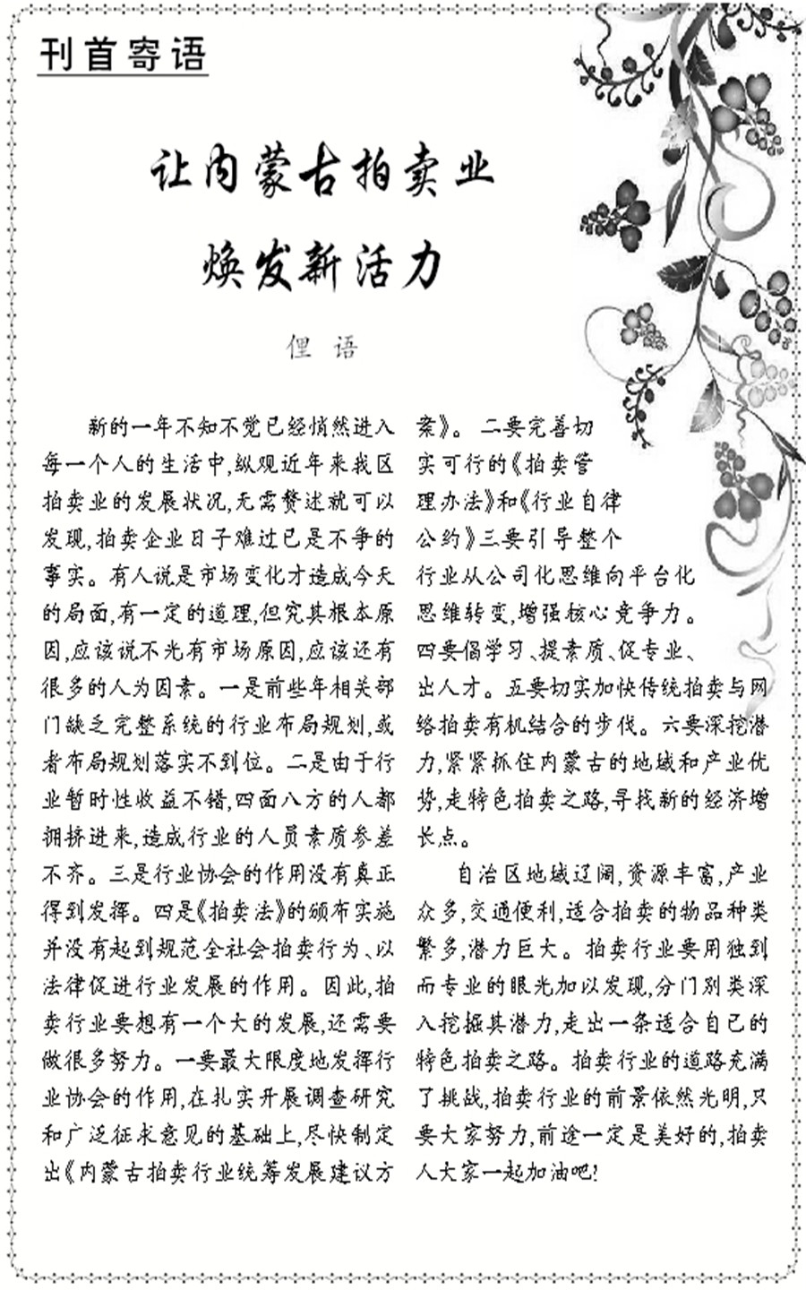 你當(dāng)前的位置:內(nèi)蒙古拍賣行業(yè)協(xié)會(huì) > 首頁(yè) > 電子讀物 >> 出版物