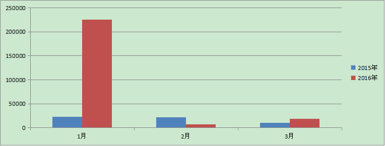 內(nèi)蒙古地區(qū)2016年第一季度拍賣經(jīng)營統(tǒng)計數(shù)據(jù)分析 據(jù)全國拍賣行業(yè)管理信息系統(tǒng)顯示,截止3月底,全區(qū)共有拍賣企業(yè)146家,其中分公司4家。從業(yè)人員789人,拍賣師196人。2016年第一季度,拍賣成交131場,同比下降21% ,流拍112場,同步下降25%,實現(xiàn)成交額252255.74,同比增長355.9%,傭金收入465.85,同比下降26%。上繳稅收24.45,同比下降45%。利潤132.9,同比下降43%。 一、2016年一季度經(jīng)營情況 根據(jù)經(jīng)驗統(tǒng)計數(shù)據(jù)情況分析顯示:2016年第一季度與2015年同期相比除2月份下降64%,其余1月、3月均有上漲。其中1月份增長率高達864%。 2016年第一季度成交額情況 單位:萬元 | 1月 | 2月 | 3月 | 2015年 | 23391.06 | 21545.89 | 10395.36 | 2016年 | 225717.05 | 7562.07 | 18967.17 |