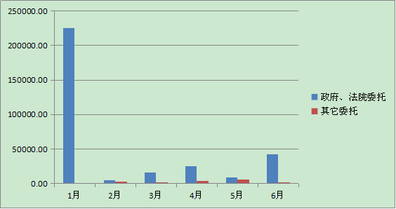 2月、4月、和5月政府、法院委托成交額仍然是主要來源,其余月份其他社會委托出現(xiàn)大幅增長。