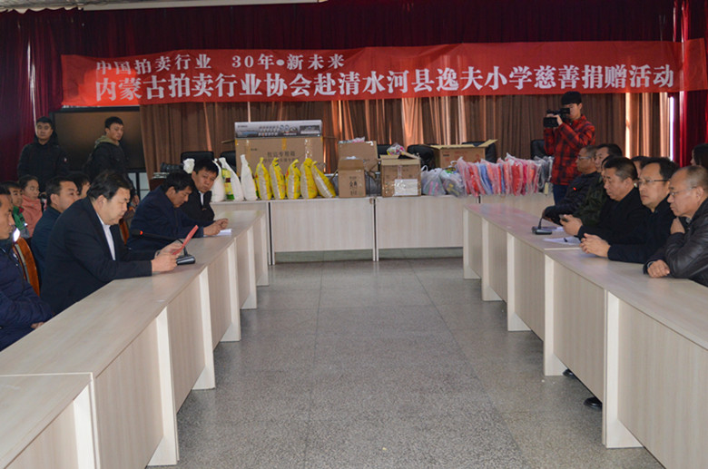 中國拍賣行業(yè) 30年 新未來 —內(nèi)蒙古拍賣行業(yè)協(xié)會赴清水河縣逸夫小學(xué)慈善捐助活動 2016年對于中國拍賣業(yè)而言,是一個值得銘記的年份。從1986年拍賣業(yè)恢復(fù)以來,中國的拍賣業(yè)發(fā)展迅速,從最初的數(shù)百萬元到現(xiàn)在的三千億元。30年我們行業(yè)經(jīng)歷過困難,面臨過挑戰(zhàn),同時我們也抓住了機遇。借此中拍協(xié)第六屆“全國拍賣咨詢服務(wù)周”活動的開展,以“30年,新未來”為主題,我們內(nèi)蒙古拍賣行業(yè)協(xié)會按照中拍協(xié)的布置和要求組織了這次慈善捐助活動。展示和宣傳了我們拍賣行業(yè)的正能量。 2016年11月25日內(nèi)蒙古拍賣行業(yè)協(xié)會及其他愛心拍賣企業(yè)帶著濃濃的愛意,滿滿的熱情奔赴清水河縣逸夫小學(xué)。