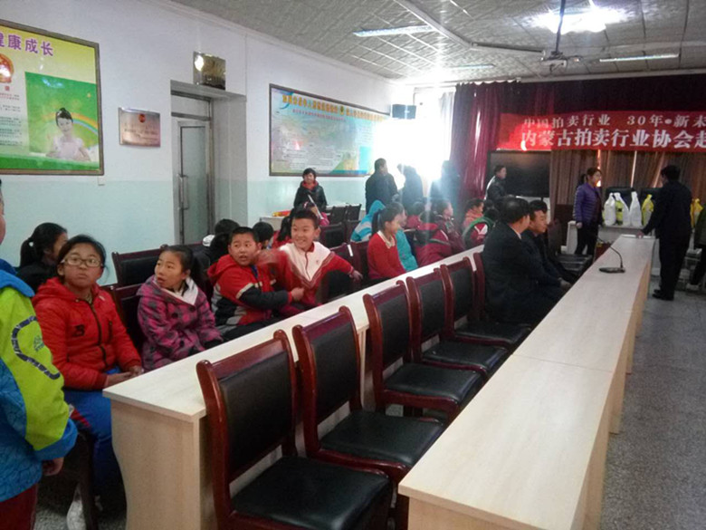 清水河逸夫小學(xué)活動現(xiàn)場 早在梁啟超《少年中國說》中就有一句話“少年強,則國強”??蓯鄣暮⒆觽兪俏覀兊奈磥?,也非常契合本次拍賣周的主題“30年,新未來”。我們拍賣行業(yè)正值青春年少,新的未來新的希望!明天正等待我們拍賣人去創(chuàng)造更多的輝煌。正如這些花一樣的孩子們! 現(xiàn)場學(xué)生代表 本次慈善義捐活動由內(nèi)蒙古拍賣協(xié)會主辦,內(nèi)蒙古拍賣協(xié)會秘書處負責(zé)實施,內(nèi)蒙古拍賣行業(yè)協(xié)會會長李繼生、內(nèi)蒙古拍賣行業(yè)協(xié)會秘書長賈世軍、協(xié)會副會長趙軍、協(xié)會副會長王志江、協(xié)會理事哈斯,協(xié)會會員郭素英、張哲,協(xié)會副會長單位代表李艷林、協(xié)會副會長單位代表包娜及清水河縣教育局的有關(guān)領(lǐng)導(dǎo)和逸夫小學(xué)的校長和書記參加了本次捐贈活動。本次慈善捐助活動共向清水河逸夫小學(xué)捐贈了價值一萬八千五百六十元的物品,用于學(xué)校的日常教學(xué)和孩子們的學(xué)習(xí)。通過這次慈善捐助活動不僅增強了我們拍賣行業(yè)的責(zé)任感,也讓更多的人了解了拍賣行業(yè)。 呼市電視臺、北方新報、內(nèi)蒙古晨報、內(nèi)蒙古晚報、攝影記者主流媒體跟蹤并進行了報道。 內(nèi)拍協(xié)領(lǐng)導(dǎo)及部分企業(yè)負責(zé)人