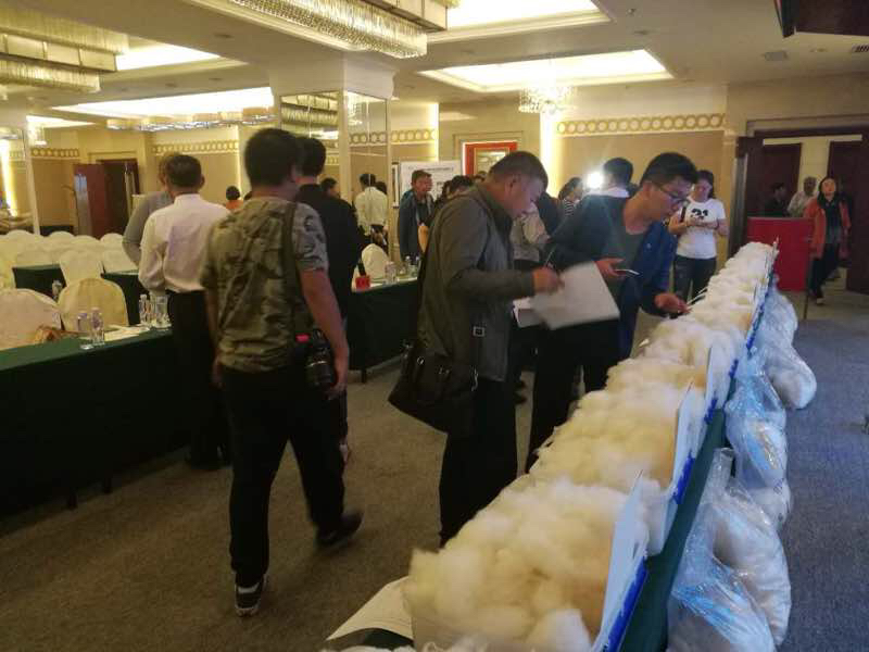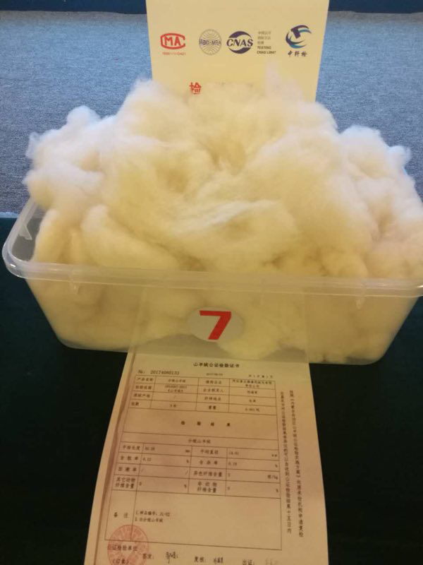本次羊絨拍賣以無毛絨為主。羊絨拍賣企業(yè)在技術(shù)部門和合作社的配合下,對合作社社員的優(yōu)質(zhì)羊絨(纖維細(xì)度14.5微米以下)按高于市場價20~40元每公斤收購。企業(yè)對已收購的原絨通過認(rèn)真分選和再分級后分梳出無毛絨,并按分梳批次將擬拍賣的無毛絨裝入纖維檢驗部門指定的包裝袋,經(jīng)自治區(qū)纖維檢驗部門公證檢測后統(tǒng)一打包封存,出具公檢證明,進入拍賣環(huán)節(jié)。拍賣成功后,企業(yè)可將部分拍賣收益以二次分紅的形式通過合作社獎勵給供絨牧戶。各環(huán)節(jié)需要見證人及照片、音像資料佐證。