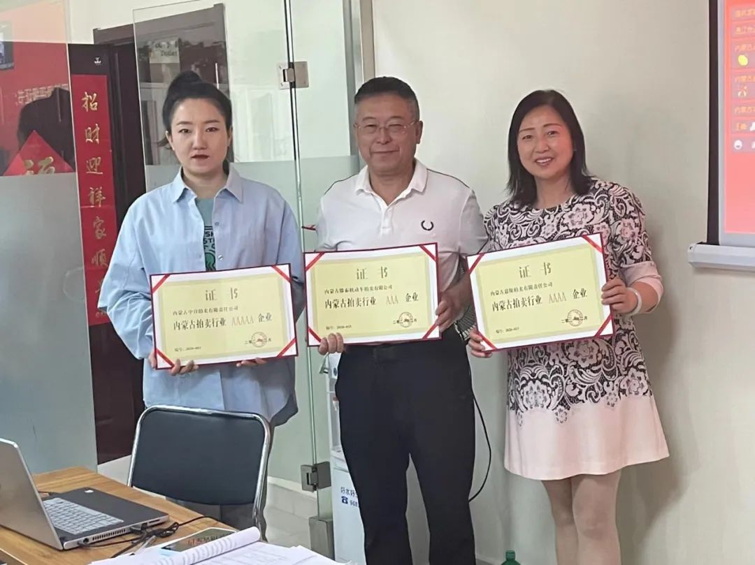 頒發(fā)內(nèi)蒙古拍賣企業(yè)信用等級評級證書